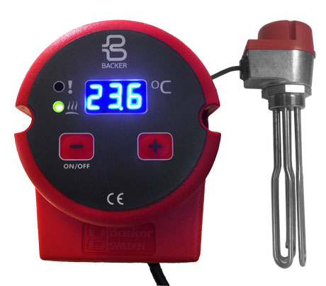 Mikroprocesorowy regulator temperatury umożliwia kontrolowanie grzałk zanużeniowych poprzez czujnik NTC umiejscowiony w rurce kapilary zamontowanej w grzałce. Obudowa kontrolera wyposażona jest w czytelny wyświetlacz LED wyświetlający bieżącą wartość temperatury, komunikaty o ewentualnych problemach jak również ustawienia. Awarie takie jak uszkodenie grzałek czy przegrzanie sygnalozowane są w sposób wizualny i dźwiękowy.